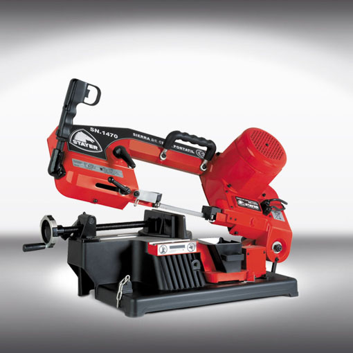 SIERRA DE CINTA PARA CORTE DE METALES STAYER SN 1470 PARA HIERRO CON MOTOR DE INDUCCION MONOFASICO DE ALTA POTENCIA MECANICA Y SILENCIOSO CON 2 VELOCIDADES. ROBUSTA MORDAZA RAPIDA CON APERTURA MAXIMA DE 100 MM. CORTE DE O – 45º. GUIA AJUSTABLE DE LA CINTA DE SIERRA. TENSOR SEMIAUTOMATICO DE LA HOJA DE SIERRA. ARCO DE SIERRA DE FUNDICION DE HIERRO.