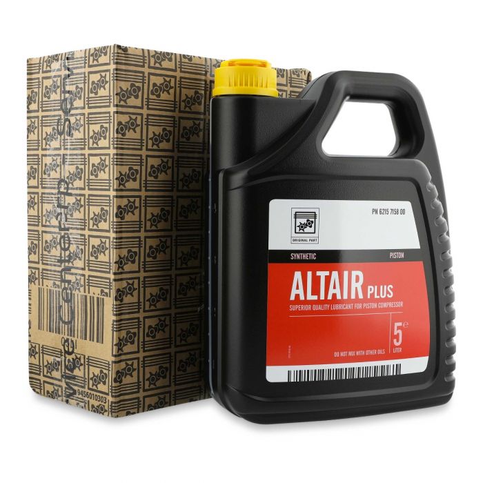 Aceite para compresor ALTAIR PLUS para compresores de pistón INDUSTRIALES. Con lo que conseguimos un máximo rendimiento y eficiencia. Ensayados y aprobados para todas las aplicaciones y entornos. Mayor vida útil para su compresor. Las propiedades químicas de Altair están específicamente diseñadas para maximizar la fiabilidad de cada un de los componentes de su compresor. Ahorro de los costes de mantenimiento
