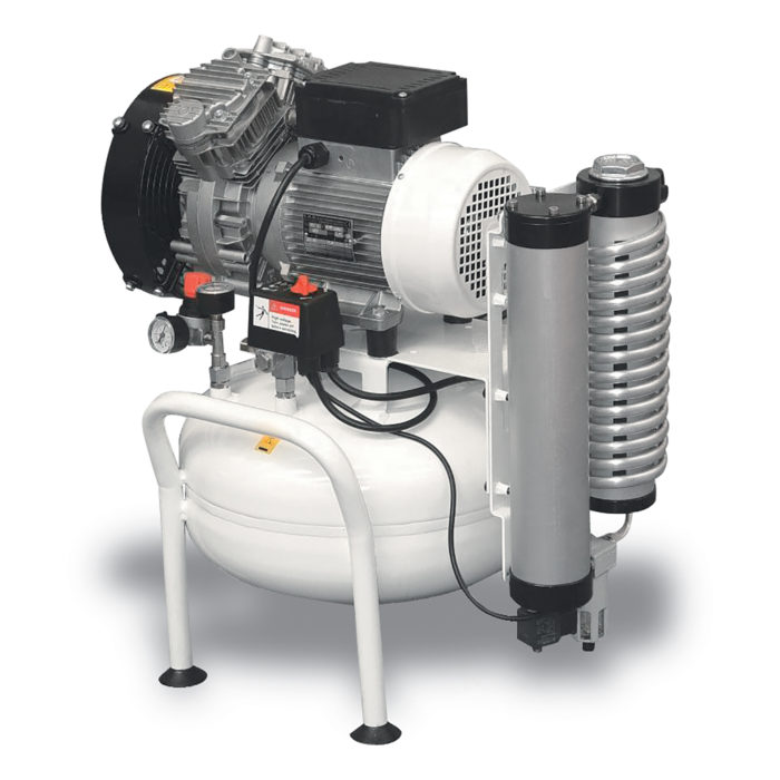 COMPRESOR ABAC PARA DENTISTAS CLR 15-50 DE 1.5 HP Y DEPOSITO DE 25 LITROS Y SECADOR FRIGORIFICO. LOS COMPRESORES EXENTOS DE ACEITE CleanAir PRODUCEN AIRE DE LA MAS ALTA CALIDAD SIENDO APTO PARA CLINICAS DENTALES, LABORATORIOS PROCESOS DE ALIMENTOS, DISPENSACION DE BEBIDAS Y MUCHAS OTRAS APLICACIONES DONDE EL AIRE EXTREMADAMENTE PURO ES UNA NECESIDAD. TODOS LOS DEPOSITOS SON TRATADOS INTERNAMENTE CON UN RECUBRIMIENTO ESPECIAL PARA EVITAR LA CORROSION Y ASI PROLONGAR SU VIDA UTIL GARANTIZANDO UN TRABAJO PERFECTO.