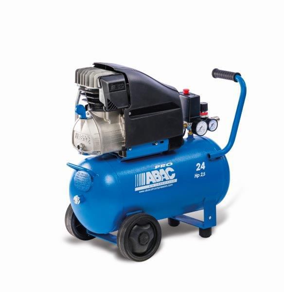 COMPRESOR ABAC POLE POSITION L25P DE 2,5 HP Y UN DEPOSITO DE 24 LITROS. DE TRANSMISION DIRECTA, ALCANZA GRANDES CAUDALES DE PRODUCCION A PRESION DE 10 BARES PARA UN RENDIMIENTO PROFESIONAL. INCLUYE RUEDAS PARA UN FACIL TRANSPORTE Y DOBLE APOYO PARA MAYOR ESTABILIDAD. IDEAL PARA TRABAJOS INTENSIVOS.
