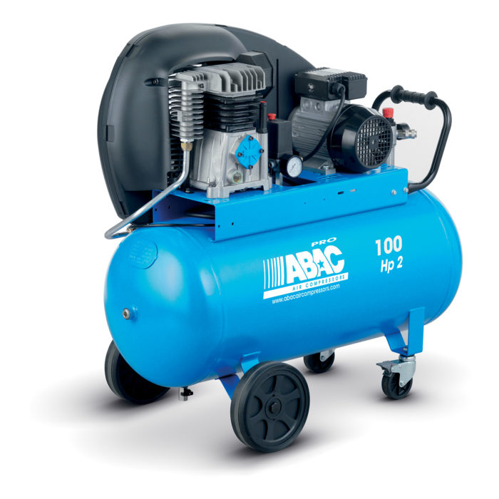 COMPRESOR DE 2 HP. DEPOSITO DE 100 LITROS. Compresor de la serie line de una Etapa para uso profesional, transmisión por correas y cilindro de hierro fundido. Protección de correas patentada por Abac que mejora la refrigeración del compresor. Ideal para trabajos de uso profesional en talleres carpintería reparación de neumáticos, talleres de mantenimiento.