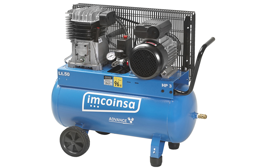Compresor Imcoinsa de la serie ADVANCE de 3 hp. de transmisión por correas orientado al ámbito profesional de diferentes sectores, automoción, agrícola, pintura, carpintería e industria en general. Con la transmisión por correas favorecemos el rendimiento de la máquina. Ideal para trabajo profesional en talleres industriales, talleres de inflar ruedas, talleres de pintura y de carpintería de madera.