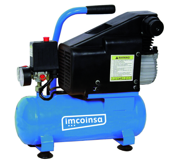 Compresor Imcoinsa de la serie BRICO 1.5 hp. de acoplamiento directo, equipos ligeros y de fácil transporte, orientados a los aficionados al bricolaje. Su dotación hace que sean muy fáciles de manejar con empuñadura adicional para facilitar el transporte. Ideal para trabajos semiprofesionales en diferentes sectores, automoción, agrícola, pintura, carpintería e industria en general.