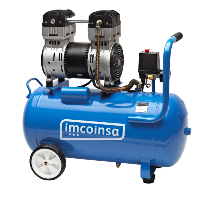 Compresor Imcoinsa de la serie SILENCE de 1.5 hp y deposito de 50 litros. Compresor silencioso equipado con motor de inducción con un bajo nivel sonoro y mayor vida útil. Refrigeración sin aceite (puede trabajar volcado), facilitando el transporte y libre de mantenimiento. Cabezal de altas prestaciones. Ideal para hacer trabajos de bricolaje y semiprofesionales en montaje de puertas y muebles en domicilios.