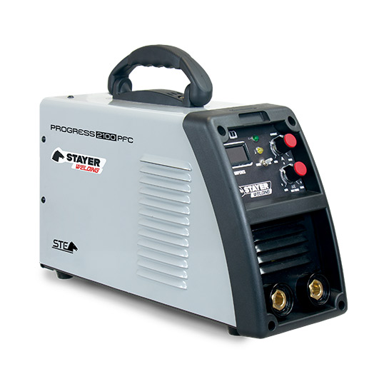 El modelo 2100 PFC con una corriente de 210 Amperios y un factor de marcha del 100%. Inverter IGBT avanzado, compacto y de bajo peso para soldadura de electrodo con posibilidad de uso del equipo para soldadura TIG Gama de producto con calidad superior de la soldadura mediante tecnología innovadora.